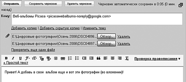 Рисунок 1.16. Сначала добавляем файлы, потом пишем письмо