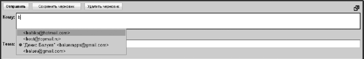 Рисунок 1.20. Gmail отгадывает адреса как заправский фокусник