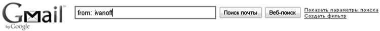 Рисунок 1.24. Так найдутся письма как от ivanoff@gmail.com, так и от человека, записанного в вашей контактной книге как Ruslan Ivanoff.