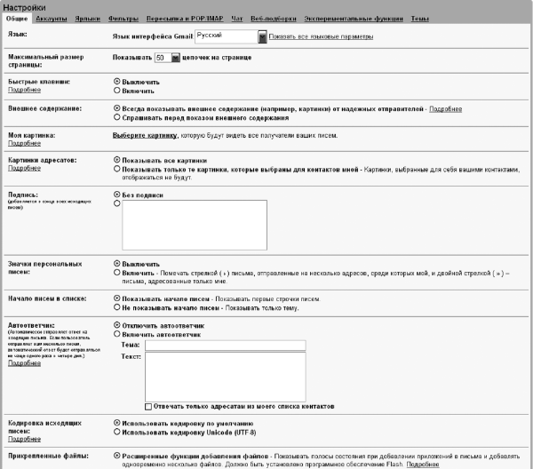 Любой автолюбитель знает, как важно настроить машину «под себя», когда сиденье поднято до определенной высоты, зеркала установлены так, чтобы обеспечивать максимальный обзор, а радио настроено на любимую волну. Поэтому для максимально эффективной работы стоит произвести тонкую настройку и вашей почтовой службы – благо для этого у нас есть все инструменты. С помощью ссылки «Настройки» в правом верхнем углу экрана зайдем в настроечное меню. Коснемся лишь наиболее важных опций «тюнинга» веб-интерфейса. Это не отнимет много времени.