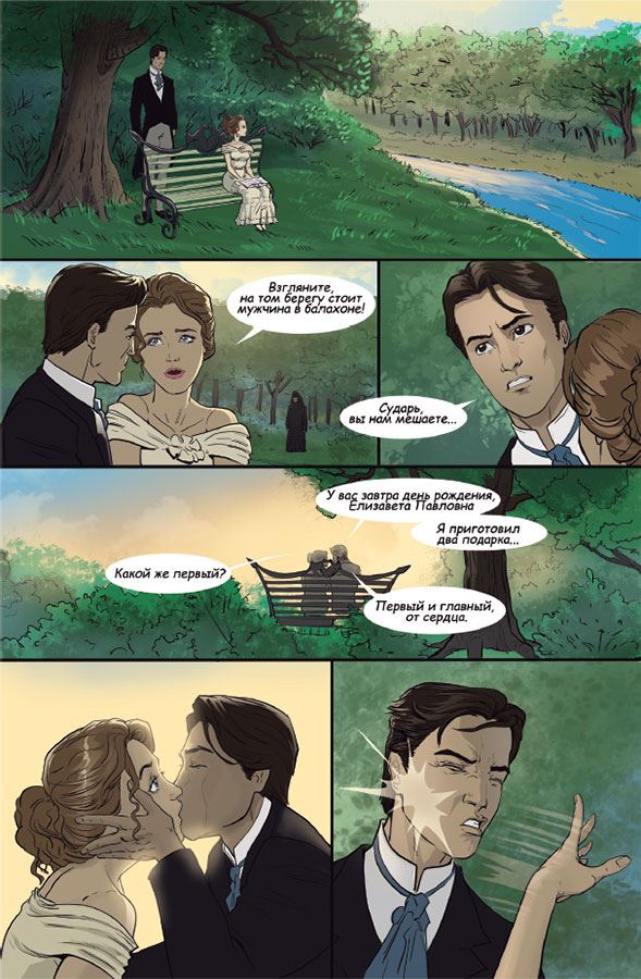 – Добрый день, Елизавета Павловна, это был просто бродяга, ну или ваш тайный воздыхатель, – с улыбкой прошептал Георгий в ответ Лизе, смотря ей в глаза.