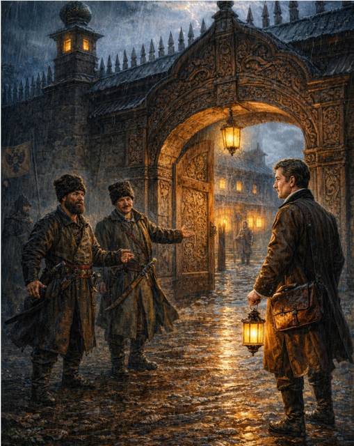 Хлюпая сапогами по грязи, мы заходили во двор не с парадной стороны. Открыли небольшую калитку на заднем дворе – причём она была закрыта всего лишь на защёлку. Мои сопровождающие кивнули одному из казаков, стоящему на карауле, проследовали в дом.