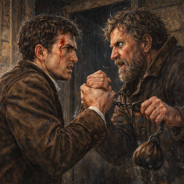 Я даже не заметил, как в его левой руке вдруг оказался кистень – короткий, увесистый, с мешочком песка на конце. Без малейшего колебания он попытался обрушить его на меня. В последний миг я успел склонить голову, и удар просвистел в одном ногте от виска.