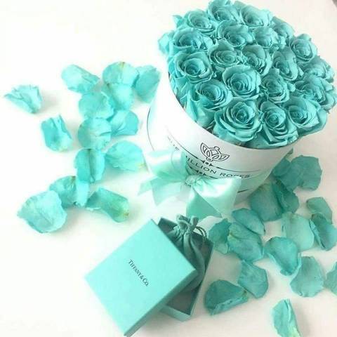 *Цвет тиффани – насыщенный голубой с отчетливыми бирюзовыми нотками выбрал в XIX веке сам основатель компании Tiffany Чарльз Льюис Тиффани для обложки так называемой Голубой книги. С 1845 года это издание ежегодно открывает осенний сезон, представляя коллекции самых изысканных ювелирных изделий от-кутюр.