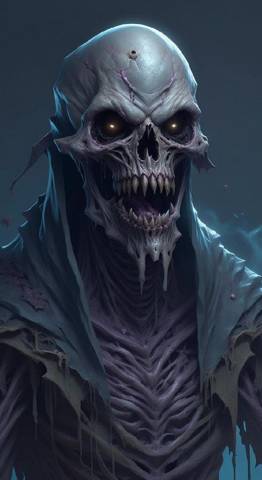 После того как рёбра сформировались из земли вырвался позвоночник, на котором висел огромный череп обтянуты с одной стронной кусками плоти, на которых в глазнице крепился один единственный зелёный глаз, смотрящий на нас с полной безмятежностью.