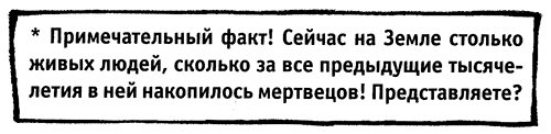 А потом мы с мамой прочитали в энциклопедии, что на Земле во все предыдущие эпохи, вместе взятые, не считая последних пятидесяти лет, проживало меньше людей, чем живёт сейчас.