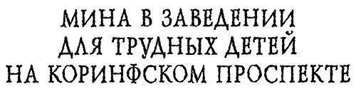 Ну вот. Теперь о заведении для трудных детей. Адрес: Коринфский проспект.
