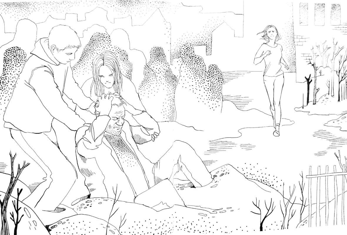 Вскоре домой вернулся мой отец, весь в снегу. Невесело улыбнувшись нам, он поспешил наверх. Потом рядом с нашей калиткой встал автомобиль «скорой помощи», который осветил наши окна голубым светом мигалок. Санитары помогли закутанному в покрывало деду сойти вниз: лицо серое, взгляд пуст, а ноги с трудом шаркают по полу. Уже у порога Элли подскочила к нему и чмокнула в щеку: