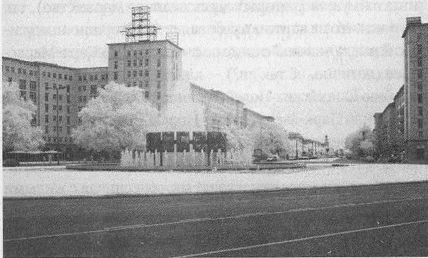 Мне приходилось слышать, что в Берлине открыт музей «Штази», а поскольку я совсем недавно прочел книгу «Штазиландия», в которой ведется подробный рассказ о стране, жителей которой Большой Брат постоянно заставлял шпионить за всеми остальными, мне показалось, что такой музей может оказаться интересным местом. Он расположен в приличном удалении от центра (едва ли не на окраине), в массивном комплексе зданий, служившем штаб-квартирой восточногерманских служб безопасности. Упоминание о нем нечасто встретишь в списках берлинских музеев (которых здесь великое множество), так что поиск его на карте потребовал от меня приличных усилий. Я выехал на велосипеде по потрясающей Карл-Маркс-аллее (логично, не так ли?) – вдохновленному Советами подобию Елисейских Полей, Авениды 9 де Хулио в Буэнос-Айресе или Парк-авеню в Нью-Йорке. Но этот бульвар даже шире и величественнее многих из них. Многоквартирные дома, высящиеся вдоль аллеи, напоминают московские «высотки», но превосходят их, соперничая с жилыми комплексами, которые стоят вдоль больших магистралей других городов; вот только здесь они более упорядочены и, точно повторяя друг друга, уходят практически за горизонт. Масштабы самой улицы и зданий на ней не совсем человеческие, эти образы навевают мне мысли о бесконечном рае какой-то идеалистической утопии. В конце концов, идеалы – как и идеологии – не имеют границ. А этот конкретный «рай на земле» не похож на типичные успокаивающие уродства модернистских проектов – то была совсем иная утопия. А здесь мы видим едва ли не североитальянскую деталировку, и даже если эти здания пугают своими нечеловеческими размерами и сюрреалистически точным повторением, они гораздо привлекательнее обычных жилых кварталов Америки и даже множества модернистских строений Запада, где полное отсутствие декора стало считаться достоинством. Ниже приведен инфракрасный цифровой снимок.