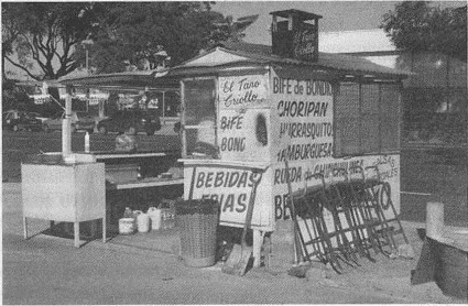 Над оградой набережной нависают рыболовы. На одинаковом расстоянии друг от друга стоят ларьки, где жарится мясо для водителей-дальнобойщиков и всех, кто захочет наскоро перекусить. Пакеты с углем, сложенные у ларьков, обеспечивают жарку кровяных колбасок, стейков, гамбургеров и прочих полуфабрикатов из прославленного аргентинского мяса – в начале дня все они готовятся, шипя и потрескивая в предвкушении проголодавшихся толп. Многие ларьки предлагают чорипаны– союз чорицо(сосиска) и пан(хлеб). Есть и другое популярное блюдо под названием вачьопан:дословный перевод – «пустой бутерброд», но и он тоже отрезан от коровы. Вегетарианцам здесь делать нечего.