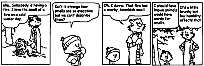 Рис. 1.1. Выразимость и невыразимость обонятельного опыта. (Calvin and Hobbes © Watterson. Distributed by Universal Press Syndicate. Перепечатка разрешена. Все права сохранены.)