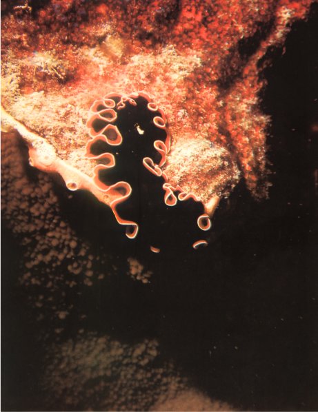 Третья категория обитателей рифа охватывает животных с сегментированными телами. От них сохранились окаменелости форм еще более ранних, чем трилобиты, найденные в горах Марокко. Эдиакарские отложения в Австралии, содержащие остатки медуз и морских перьев, сохранили и отпечатки сегментированных червей. Один вид имеет серповидную голову и сегменты числом до сорока с бахромой ножкообразных придатков по бокам. Это животное удивительно похоже на многощетинковых червей, в изобилии встречающихся на Большом Барьерном Рифе. Бороздки, опоясывающие тело этих современных червей, соответствуют стенкам, которые разделяют его внутри на отдельные «отсеки». Каждый сегмент обладает собственным набором органов: по обеим сторонам ножкообразные выступы, иногда со щетинками, пара перистых придатков, через которые поглощается кислород, и еще пара трубочек в стенке тела для выбрасывания непереваренных остатков. Длинная кишка, большой кровеносный сосуд и нервный тяж проходят через все сегменты из конца в конец тела, соединяя их и координируя их деятельность.