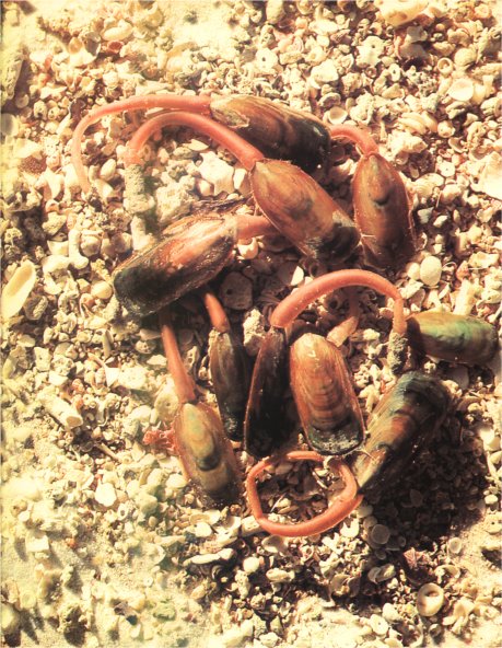 Такая сцена, вероятно, разыгрывалась каждую весну на протяжении сотен миллионов лет. Вначале суша была лишена какой бы то ни было жизни, и на береговых отмелях, где до них не могли добраться морские хищники, яйцам ничто не грозило. Возможно, именно поэтому у мечехвостов и выработалась привычка откладывать их там. Теперь прибрежные отмели перестали быть надежным приютом: орды чаек и мелких береговых птиц собираются там на обильное пиршество. Тем не менее очень много оплодотворенных яиц остается под покровом песка, и месяц спустя следующий высокий прилив добирается до этой части пляжа, смывает песок, и личинки уплывают в море. Именно эта стадия наглядно свидетельствует о родстве мечехвостов с трилобитами: маленькие личинки еще лишены сплошного панциря взрослых особей и сегменты четко видны даже сверху. Их даже иногда называют «трилобитными личинками».