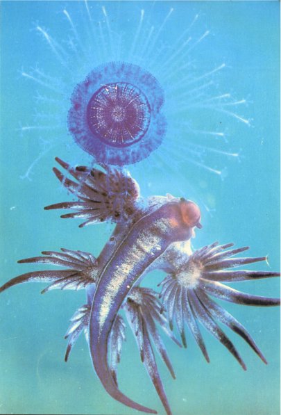 Голожаберный моллюск нападает на медузу (Большой Барьерный Риф)