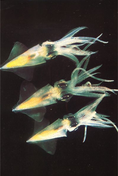 Щупалец у кальмаров и каракатиц много меньше, чем у наутилусов, – всего десять, а у осьминогов, как показывает их название, и вовсе восемь. Кальмары гораздо подвижнее осьминогов: продольные плавники по бокам, волнообразно изгибаясь, позволяют им плавать очень быстро. В случае необходимости осьминоги и кальмары способны, как и наутилусы, двигаться по принципу ракеты.