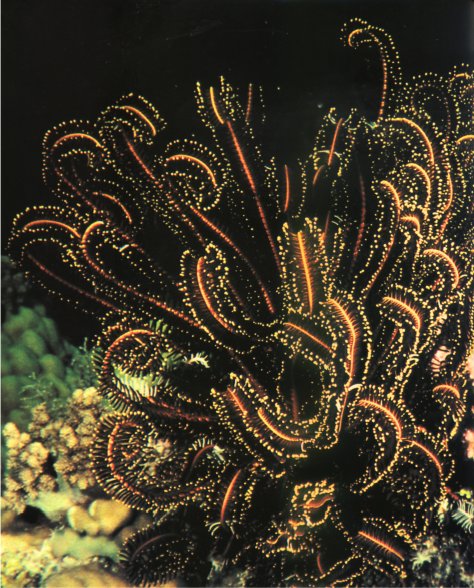 Хотя среди древних морских лилий самыми многочисленными были стебельчатые морские лилии, в наши дни наиболее распространены бесстебельчатые виды. Стебли у них заменены пучком членистых «корешков», которыми они прикрепляются к кораллам или к камням. В некоторых местах Большого Барьерного Рифа они прямо-таки устилают дно оставляемых приливом луж, словно бурый ковер с грубым кустистым ворсом.
