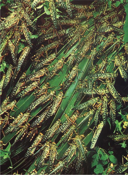 Но феромоны сохраняют активность только в течение короткого времени. Если число солдат в колонии сокращается, соответственно падает и количество их феромонов в циркуляции. Царица-матка не только вырабатывает феромоны, но и получает их с пищей, а с нею и всю информацию. То ли она реагирует тем, что производит яйца особого рода, из которых выводятся только солдаты, то ли рабочие кормят определенным образом уже существующих личинок, пока окончательно не выяснено. Возможно, что для разных видов по-разному. Но как бы то ни было, в ответ на изменение ситуации появляются все новые и новые солдаты, покуда не восстанавливается первоначальное соотношение. Царица тоже время от времени меняет характер экскреции своих феромонов, и тогда развитие личинок не подавляется, они достигают половой зрелости. Ходы термитника наполняются шуршащими толпами молодых крылатых половозрелых насекомых. У некоторых видов рабочие делают в стенах термитника специальные пробоины и строят перед ними «стартовые площадки». Выходы эти охраняются солдатами. В один прекрасный день, вскоре после начала дождей, солдаты отступают в сторону, из щелей, как дым, валят летучие термиты и, клубясь, поднимаются в небо.