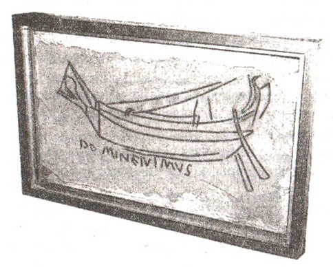 [Закрыть]. Изображение старинного римского торгового судна. А внизу надпись. Джек опустился на одно колено. Костас поступил так же. Линии рисунка просматривались четко. Художник создавал его уверенными движениями скребка. Видимо, он не понаслышке знал, как выглядит корабль, хотя до моря отсюда далековато. Кем был он? Возможно, мореплавателем, паломником, одним из первых… Джек опустил взгляд на слова под рисунком. Сердце забилось чаще.