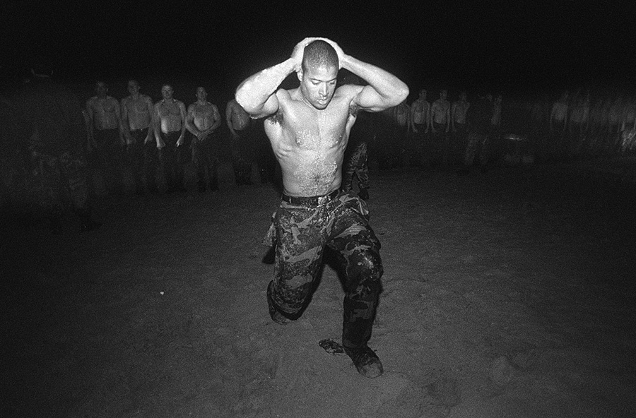 Адская неделя – это дьявольская опера, которая разворачивается как крещендо, достигая пика мучений в среду и не прекращаясь до тех пор, пока в пятницу днем не объявят об окончании. К среде мы все были разбиты, и каждый дюйм нашего тела был натерт. Все наше тело представляло собой одну большую малину, сочащуюся гноем и кровью. Мысленно мы были зомби. Инструкторы заставляли нас делать простые подъемы лодки, а мы все тащились. Даже моя команда едва могла поднять эту лодку. Тем временем Псих, СБГ и другие инструкторы внимательно следили за нами, выискивая слабые места, как всегда.