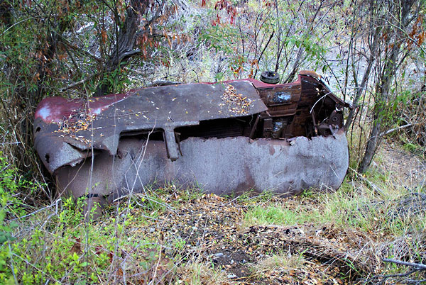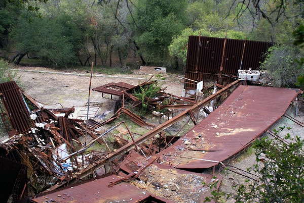 Достигнув дна каньона, можно обнаружить, что, хотя местная флора сильно постаралась, чтобы вернуть землю, повсюду можно увидеть обломки былой цивилизации. Некоторые строения остаются в значительной степени нетронутыми – резервуар наполняемый родниковой водой, объёмом почти в 400 000 галлонов, обслуживавший сложную систему с питьевой водой; здание с бетонными стенами, которое когда-то вмещало два электрических генератора способных осветить небольшой город; ещё бетонные лестницы длиной в сотни ступенек, каждая извивается вверх по стенам каньона; разрушенное непогодой стойло для домашнего скота; профессионально уложенные мощёные дороги; бесчисленные каменные подпорные стены; установка для сжигания отходов; бетонные фундаменты и каркасные остовы бывшего жилья; ржавеющий корпус микроавтобуса Фольксваген в стиле Мэнсона; и возле бывшего входа впечатляющие кованые ворота с электронным управлением.
