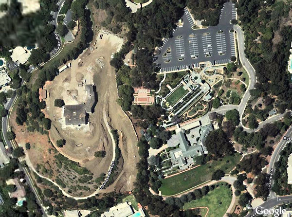 По словам Нормана, "Архивы округа сообщают, что 50 с лишним акров земли к северу от участка [Уилла] Роджерса в 1933 году купила "вдова Джесси Мёрфи", но настоящими владельцами называются Стивенс – занимающийся добычей серебра инженер Норман и Вайнона, дочь промышленника и женщина поддающаяся влиянию сверхъестественного. Местные предания гласят, что Вайнона попала под чары одного неназванного джентльмена..." Эта троица вместе с другими неназванными развернула "10-летнюю программу строительства стоимостью $4 миллиона... начав с ёмкости для воды, вмещающей 375 000 галлонов, и бетонной дизель-генераторной станции со стенами в фут толщиной – оба объекта всё ещё видны. Склоны были превращены в садоводческие террасы, электрифицированный забор окружил границы, и огромное хранилище-холодильник было встроено в склон холма... И только с одной вещью Мёрфи/Стивенс никак не могли определиться – их жилым домом. Первым архитектором был Велтон Бекет, но есть и эскизы Ллойда Райта, а в 1941 году Пол Уильямс начертил чертежи раскидистого особняка с 22 спальнями, столовой для детей, тренажёрным залом, бассейном и мастерской в подвале".
