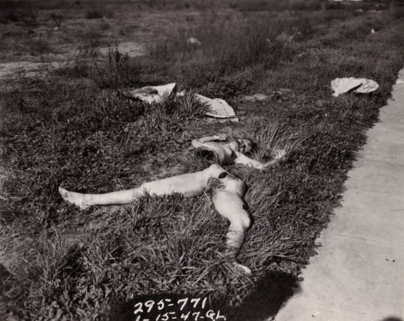 Изуродованное тело Элизабет Шорт. Снимок пoлицейского фотографа 15 января 1947г.