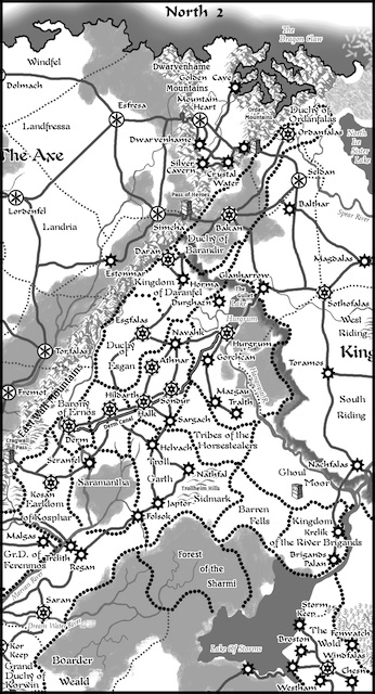 Рыжеволосый мужчина покачал головой и поднялся. Он отжал свою поношенную одежду, но она никогда больше не приобретет портновского великолепия, и он сдался, пожав плечами, и вгляделся в ветер. Порывы ветра теребили его волосы, и он уткнулся в них, чувствуя приближение бури на своих скулах. Белхэйдан маячил перед ним, пронизанный нитями светящихся уличных фонарей, в темноте поблескивали окна. Большая часть города, спроектированного гномами, была погребена в скальной породе крутого горного склона и предгорий, увенчанных его стенами и укреплениями, но его широкие улицы были густо застроены наземными домами, магазинами и тавернами, предпочитаемыми другими расами людей. Теперь рыжеволосый мужчина задумчиво почесал подбородок, затем направился к уличным фонарям, ведущим к сердцу города.