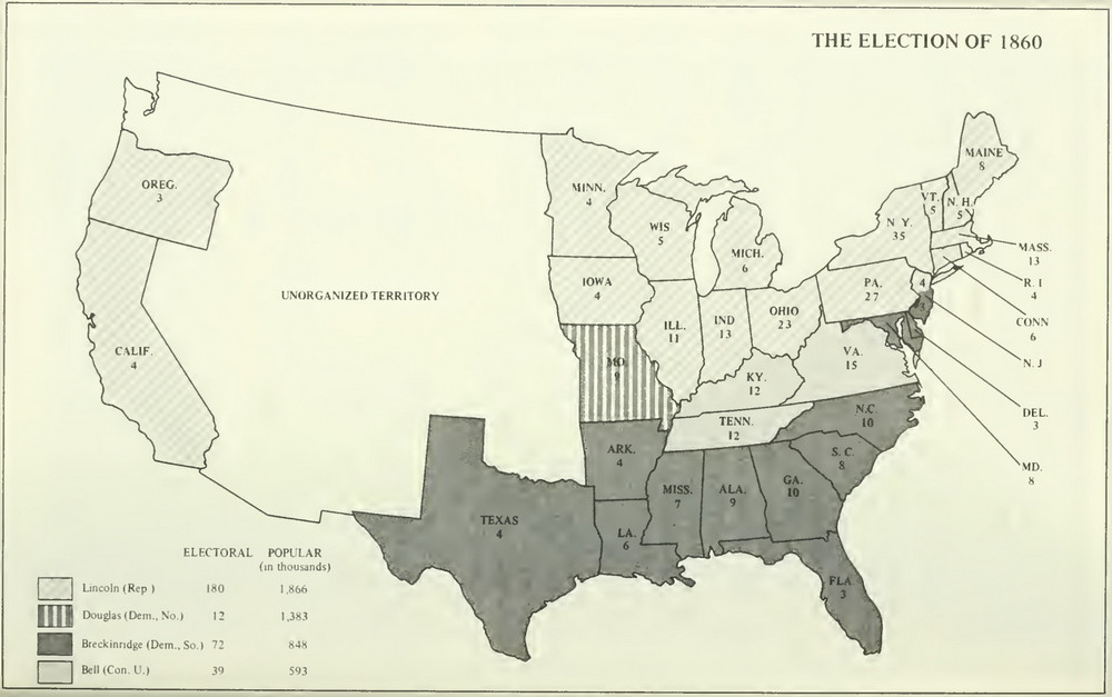 Выборы ознаменовали собой кристаллизацию двух полностью секционированных партий. Но победила партия северной части, которая, получив президентское кресло, стала правительством десяти штатов, в которых она даже не выдвигала своего кандидата. Процесс секционной поляризации был почти завершён, и оставалось только посмотреть, какой ответ последует со стороны той части, которая оказалась на проигравшем конце оси.