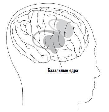 Базальные ядра (их несколько) имеют непосредственное отношение к тому, как мозг хранит и обрабатывает рутинные операции. Они представляют собой как бы шаги, из которых, как в танце, складывается общий порядок. Базальные ядра распознают, хранят и воспроизводят готовые шаблоны. Основной принцип их работы что-то вроде оператора «если – то» в программировании. К примеру, «Если вы собираетесь пить горячее, не спешите; сначала сделайте маленький глоточек». Подобные рутинные действия хранятся в виде сложных схем. Каждая из них может содержать команды на срабатывание миллионов нервов, которые точно в заданном порядке подадут команды сотням мышц, и они сократятся на точно заданное время с точно заданной силой, чтобы вы могли поднять со стола за ручку кружку с горячим напитком, поднести ее ко рту и отхлебнуть.