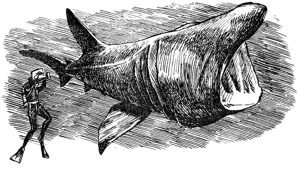 Привычкой гигантской акулы лежать на поверхности воды объясняется ее английское промысловое название: basking shark, означающее любительницу нежиться, греться на солнце. – Примеч. перев.