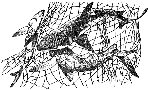 Ставные сети в Дурбане, который славится обилием акул, ставят обычные рыболовные суда, работающие под наблюдением муниципального инспектора. На это городские власти ежегодно выделяют 50 000 фунтов стерлингов. Снаряжение включает 12 сетей длиной 120 метров, которые устанавливаются параллельно берегу на расстоянии 200–300 метров от него. Шесть сетей поднимают и очищают трижды в неделю, остальные – два раза в неделю. Как показывает учет улова, крупные акулы редко подходят близко к берегу; цифры свидетельствуют также о постепенном уменьшении общей численности акул в результате систематического промысла. Вот некоторые цифры добычи акул в Дурбане: