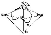 Глядя на Австралию, вы видите, что весь континент и особенно его северо-западная сторона очень точно формируется внутри растягивающих сил этой области Глобальной Решетки. Здесь, если мы посмотрим на север и середину Австралии, на точку 27, мы увидим круглую “узловую точку”, размещающую землю вокруг себя и формирующую Залив Карпентария. И вновь, узлы сформировали землю в округлые “вихри”, отталкивая от себя сушу континента и, в этом случае, формируя очертание острова прямо над Австралией. Как мы увидим в дальнейшем, в связи с Глобальной Решеткой постоянно просматриваются округлые формы. В главе, связанной с Карлом Мунком, мы видели их в Египте; мы видели, как они формируют береговую линию реки Нил в Средиземноморье.