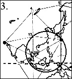 Видно: если центр помещен непосредственно в узел 15, четко просматривается гравитационное поле эллиптической формы. Если мы воспользуемся любой программой редакции стандартного изображения и выделим эллипс (используя точку 15 как центр), то попадем точно в островные формирования далеко на западе нашего рисунка. Можно попытаться использовать в качестве центра и другие точки (кроме точки 15), но нигде больше эллипс не будет подгоняться так точно, как с центром в точке 15.