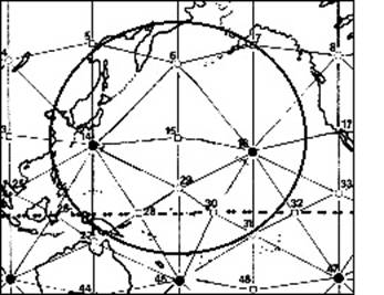Только что мы исследовали округлые образования энергии, созданные Решеткой в азиатской области Тихого Океана. Здесь мы видим, что происходит, когда рисуем еще больший “великий круг”, основываясь строго на островных формированиях в области Филиппин азиатской части Тихого Океана.