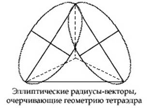 Благодаря работе Коуэна, сейчас мы наблюдаем аналогичное гармоническое, спиралевидное, геометрическое течение энергии, совершающееся в эфирной “жидкости” времени. Эллипсы, окружающие каждый из радиусов-векторов Ганна или каждую сторону Платонова Твердого Тела, будут определять те места, где спираль “изгибает” геометрическую форму, продолжая свое вращательное движение.