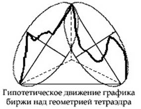 Если это трудно визуализировать, следует вспомнить, что просит делать Коуэн. По существу он говорит, что движение акций в терминах их радиусов-векторов формирует скрытую трехмерную геометрию. Однако чтобы это проиллюстрировать, у нас нет трехмерных графиков. Следовательно, двухмерный график фондовой биржи будет “сплющенной” версией трехмерного действия. Его можно визуализировать, скажем, взяв лист бумаги со “спрямленным” графиком фондовой биржи и затем обернуть его вокруг модели тетраэдра, чьи стороны имеют одинаковую длину с каждым радиусом-вектором на графике. К вашему удивлению, после оборачивания графика вокруг тетраэдра (и необходимого сгибания и перегибания бумаги в некоторых местах, чтобы исправить двумерные нарушения, создающиеся бумагой) вы, конечно, увидите, как сам график замечательно “обнимает” очертание тетраэдра. Все двадцать клиентов согласились с тем, что, используя реальные примеры с фондовой биржи, Коуэн снова и снова доказывает это в первой серии своих книг. То есть, он не оставляет нам ни тени сомнения.