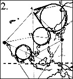[Изучая нижеприведенную схему, следует помнить, что мы смотрим на расплющенное изображение в двух измерениях. Следовательно, это не совсем то настоящее трехмерное изображение, как оно выглядело бы на самом деле. Однако оно покажет, как на совершенно “спрямленном” трехмерном графике выглядела бы одна грань тетраэдра.]