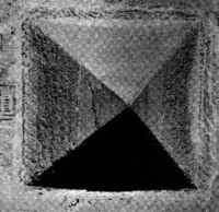 Если посмотреть на верхнюю половину октаэдра, можно легко заметить, что она идентична форме египетской Великой Пирамиды. При наличии физической модели, этот факт явно демонстрирует то, что все пирамиды были построены для фокусирования геометрической энергии эфира, как воронки в потоке воды. Как мы увидим позже в этом томе, “торсионные поля” на Земле могут варьироваться от места к месту намного больше, чем нормальные “напряжения” или магнитное поле Земли. На русском профессиональном жаргоне любая пирамида действует как “пассивный торсионный генератор”.