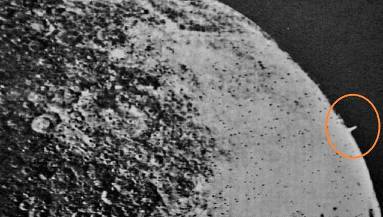 “стеклянный” купол на темной стороне Луны (снизу справа).