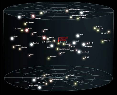 Третьего марта 2011 года Эндрю Колвин создал привлекательную схему нашего межзвездного окружения Солнца, которое, по видимому, ближе по смыслу к описанному Кори. Самые крупные звезды имеют знакомые названия, такие как Сириус, Арктур и Альфа Центавра, но многие меньшие звезды имеют технические названия, такие как HD113538, так как они были открыты совсем недавно.
