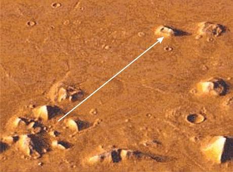 демонстрирующего Лицо на Марсе и Пирамиды к западу