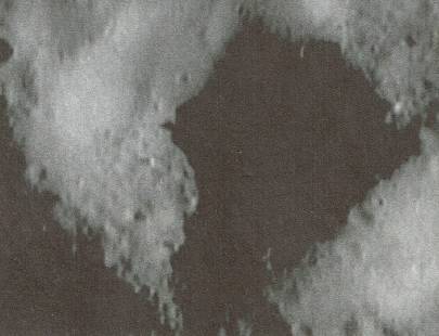 Если вы увеличите верхний левый кратер, вы увидите белую похожую на башню структуру, стоящую рядом с верхним правым углом квадрата. Она отбрасывает видимую тень в кратер, раскрывая искусственно выглядящую структуру, наподобие геометрического осколка. НАСА высказалось об этом так: “Заметьте, что валун выходит за пределы правого края верхнего кратера, и на снимке выглядит как яркое пятно. Форму валуна можно определить по тени, которую он отбрасывает на дно кратера. Тень указывает на то, что валун имеет форму алмаза и, кажется, стоит на одном конце”.[249]
