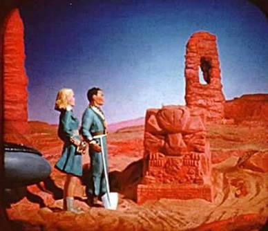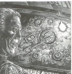 Женщина-член экипажа, д-р Дейл, проводит часы, изучая голографические записи этой расы, и приходит к следующему выводу: “Восемьсот миллионов лет назад вокруг Солнца, между Марсом и Юпитером, вращалась еще одна планета, которую они называли Варт. Солнце тогда было молодым, и его сильное излучение обогревало планету, вращающуюся вокруг него на расстоянии 400 млн. км, что позволило развиться расе существ с шестью конечностями. Они боролись с невежеством, болезнями, голодом и войнами до тех пор, пока не достигли немыслимых высот в общественных и научных достижениях. Они получали энергию от полного разрушения материи, покорили гравитацию и достигли звезд, путешествуя со скоростью, во много раз превышающую скорость света. Но приливные и вулканические силы, находившиеся за пределами их контроля, начали разрывать планету на части. Тогда раса улетела к звездам. Зная о возможности развития жизни на охлаждающихся внутренних планетах, позже они вернулись, чтобы построить памятник Времени и оставить подсказки о своем существовании. Сейчас их потомки живут где-то среди звезд, возможно, забыв про свою родину!”[255]