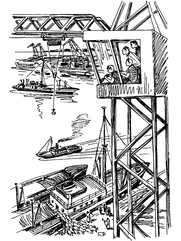 Мы слезли с крана, и вдруг откуда-то издалека бриз донес до нас отвратительный запах. Мы проследили и поняли, что он исходит от судна с дюжиной палуб, расположенных одна над другой. Мы присмотрелись, и вдруг увидели, как из корабля устремился живой поток баранов, поднимавших тучи пыли и сбивавших друг друга с ног. Когда животные добегали до конца наклонной плоскости, специальные бригады загоняли их в уже поджидавшие грузовики.