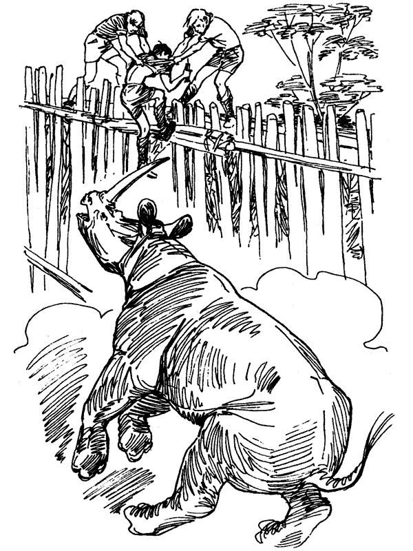 Он очнулся мгновенно и дернул могучей шеей, взмахнул головой и рогом, и небрежно затянутые узлы не выдержали, и огромные ноги вырвались на свободу, и Томпсон закричал: