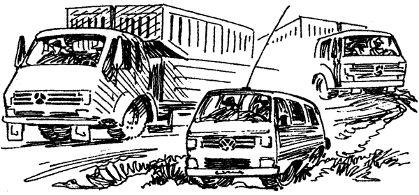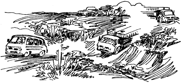 От Ньямасоты к Маунт-Дарвину через буш ведет несколько путей, и мы выбрали самую длинную дорогу, зная, что она лучшая. Трястись со скоростью двадцать пять километров в час – дело нудное и утомительное, «фольксваген» мог ехать куда быстрее, но нам нельзя было отрываться от грузовиков: вдруг что-нибудь стрясется. В «фольксвагене» была переносная радиостанция, позволяющая вызвать помощь. Была походная аптечка. Были сигареты. И даже несколько припасенных мной бутылок пива, хотя и теплого.