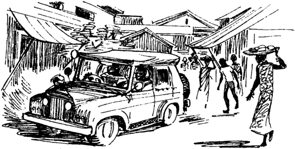 Еще когда мы были в Кении, нам посоветовали разыскать некоего Нейла Бейкера, когда мы приедем. Нейл, инженер и орнитолог, отдавал много сил сохранению природы. Мы оставили у него записку с просьбой встретиться с нами и поехали назад в город. Мы наняли красный «фольксваген» типа жука, вместе с шофером, что оказалось весьма полезной затеей ввиду чудовищного состояния дорог, как будто подвергшихся ковровой бомбардировке. Шофер по имени Джон мастерски вел машину, объезжая воронки, но даже с таким асом нам понадобилось три четверти часа, чтобы покрыть 15 миль до города.