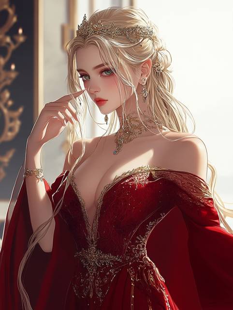 Вскоре перед зеркалом блистала выдающаяся красотка в прелестном алом платье с пышной юбкой. Шелк белых локонов струился по спине, спадая до самых ягодиц. Глаза ярко выделялись на белом, как снег, лице. Я, разумеется, и так была не уродина, но сегодня будто превратилась в сказочную фею.