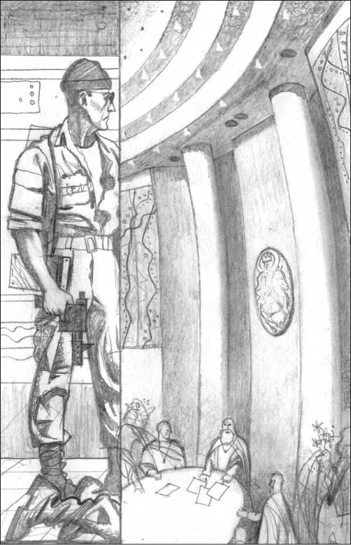 Двери конференц-зала распахнулись, и в комнату вошел конвой. Некоторые Рыцари от удивления вскочили со своих мест, остальные были так ошеломлены, что продолжали сидеть. Когда конвоиры окружили стол, старик поднялся со своего места. Хотя он дрожал от негодования, его голос звучал ровно: