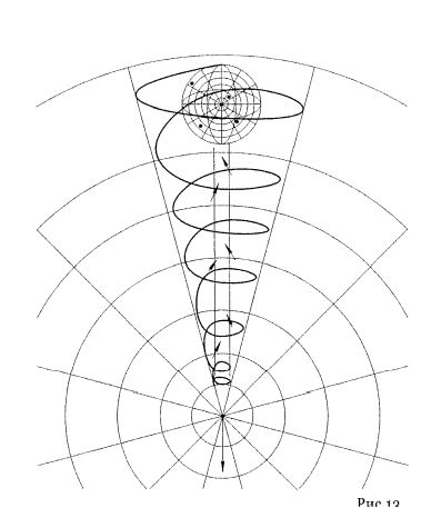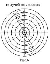 Максимально удалившись от неподвижного центра под воздействием центробежной силы, теперь они отталкиваются Кольцом Непрохождения и начинают обратный путь, только теперь уже двигаясь по спирали. Именно этим их движением обусловлено особое строение Лучей. (смотри рисунок 13)